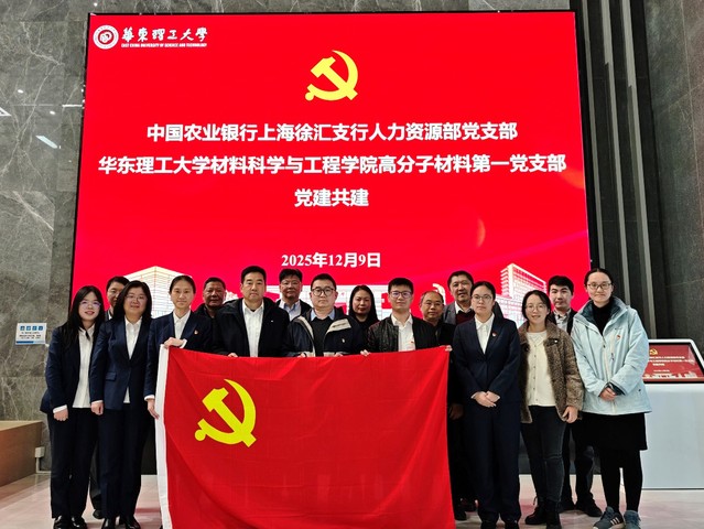 为深入学习贯彻党的二十届四中全会精神,深化党建引领作用,12月9日,材料科学与工程学院高分子材料第一党支部与中国农业银行(以下简称“农行”)上海徐汇支行人力资源部党支部在先进材料大楼522会议室举行党建共建活动。农行上海徐汇支行纪委书记胡建兵、人力资源部党支部书记郑莹、支部党员刘颖捷、王嘉晴、陈果、王源,材料学院党委副书记胡宝林、高分子材料第一党支部书记林宇、支部党员代表、党政办公室教师代表、专职组织员等参加会议,会议由林宇主持。