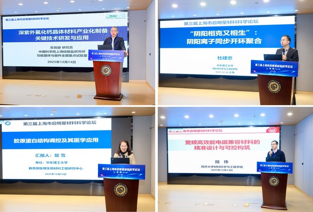 近日,由上海市科创启明星协会材料分会、上海市青年科技人才协会主办,华东理工大学、中国科学院上海硅酸盐研究所承办的“第三届上海市启明星材料科学论坛”在先进材料大楼顺利举行。副校长李春忠出席论坛并致辞。中国科学院上海硅酸盐研究所所长苏良碧、上海市科创启明星协会秘书长顾庆生、协会材料分会主任委员刘宣勇共同出席会议。校内外相关领域,50余位科研院所和企业专家学者、团队师生代表参加本次论坛。开幕式由材料科学与工程学院院长杜建忠主持。